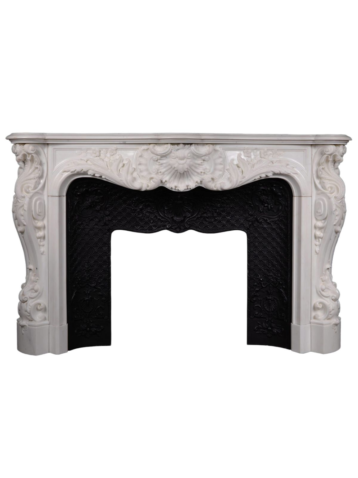 Cette cheminée est très richement sculptée : de style Louis XV opulent, le décor sculpté de cette cheminée est tout à fait exceptionnel.