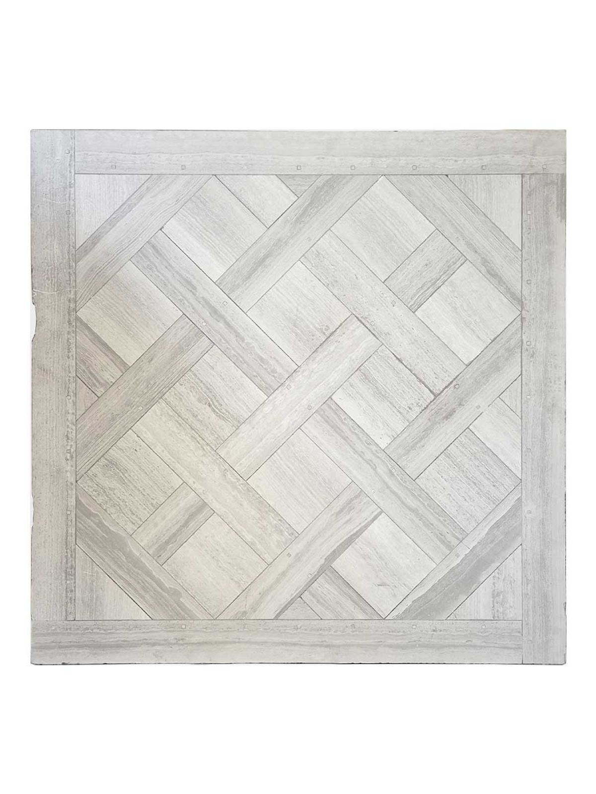Parquet de Versailles, Sol d’exception réalisé en travertin ou en marbre du Canada à l’aspect de bois veiné sombre, en marbre Bouleau de Chine.